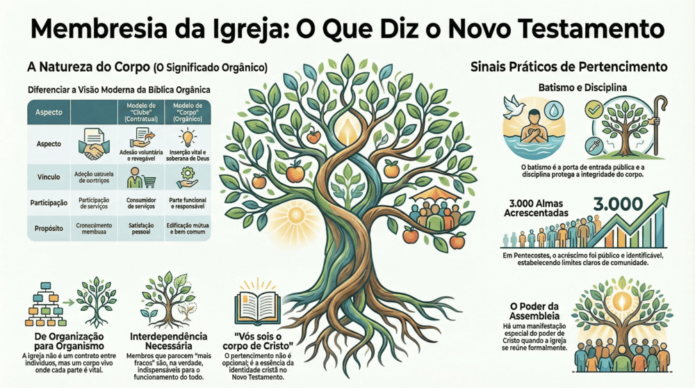 O Novo Testamento não possui um verbete técnico equivalente ao nosso conceito moderno de “membresia”. Não há formulário de inscrição, nem quadro de associados, nem classe de novos membros com revistas de EBD. E no entanto, a realidade que esses instrumentos administrativos tentam capturar está presente em cada página do registro neotestamentário com uma intensidade orgânica que nenhuma ficha cadastral conseguiria reproduzir.